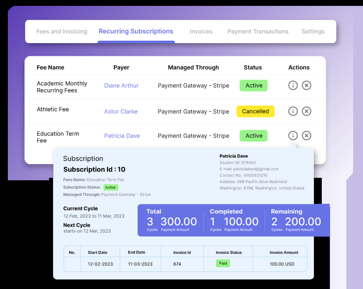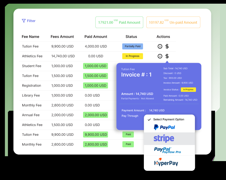 With our user-friendly online fee management system, parents and students can effortlessly make their fee payments online with our student fee management system. It is a convenient and secure way to handle school-related transactions without the need for cash or cheques.