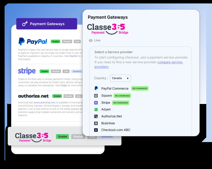 Classe365 works smoothly with different payment gateways, so you can pick the one that fits your institution best. Use our virtual terminal option to make payment processing a breeze.