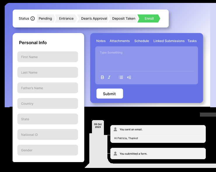 Our Form Mapping feature seamlessly syncs application form data with your SIS, so you don't have to waste time manually entering information. As soon as applicants submit their forms, the relevant data is instantly transferred to your SIS with our admission CRM. This way, you can avoid doing the same work twice, save valuable time, and proceed with admissions without delay.